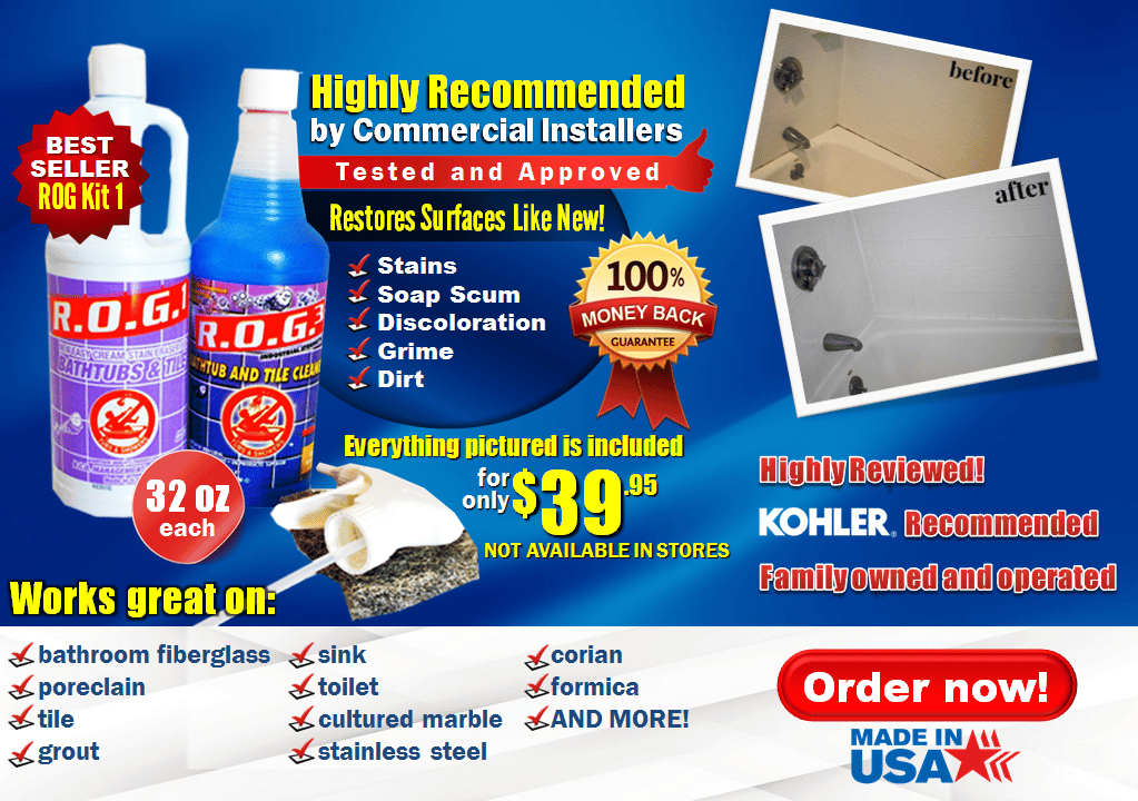 "in less than 15 minutes, rog3 can clean your entire . Product description tired of wasting endless hours cleaning your bathtub or shower? R.o.g.3 tub and tile cleaner; You would not know it by looking at the before pictures, but not only had i tried every single cleaner . 1 white cream bathtub slip guard .